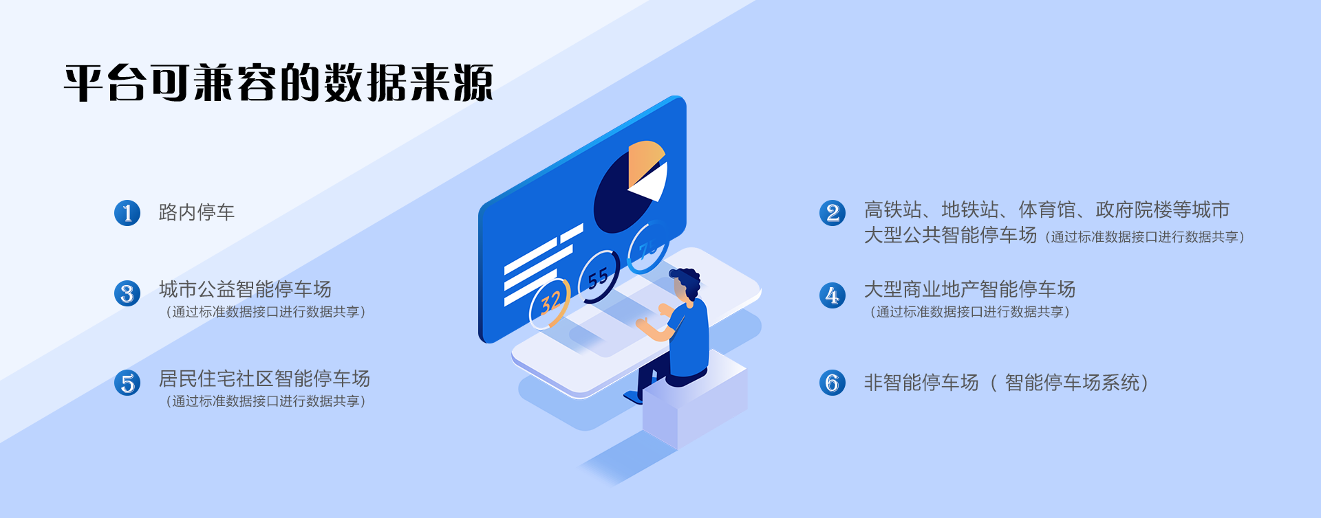 公司运用国内领先的360°路牙视频技术,融合大数据、物联网、云技术、车牌自动识别系统和第三方移动支付技术,实现地级市一个停车管理平台,与政府职能部门互联互通,支持公安、交警、城管和交通部门工作和提供信息支持,实现无人值守、自动收费的全智能化停车管理系统,融入地级市智慧城市建设。